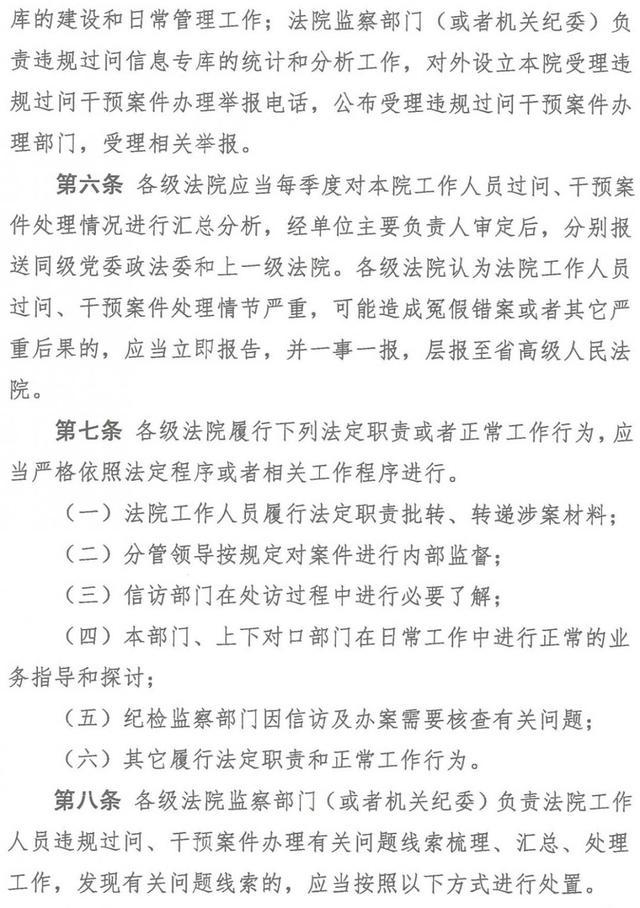 《规定》明确:对违规过问和干预案件情形的,一经发现,一律停职检查;经查属实,一律免职,并依照有关规定,视情节轻重给予其党纪政务处分;其中,充当“诉讼掮客”谋取私利的,从严从重处分;涉嫌违法犯罪的,移送公安、司法等有关机构处理。
