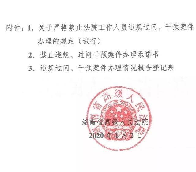 1月10日,湖南高院召开新闻发布会,通报《关于严格禁止法院工作人员违规过问、干预案件办理的规定》湘高法发(2020)1号文件出台的相关情况,该规定将于2020年1月15日起正式实行。