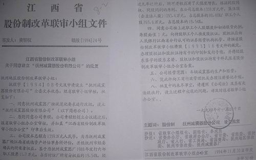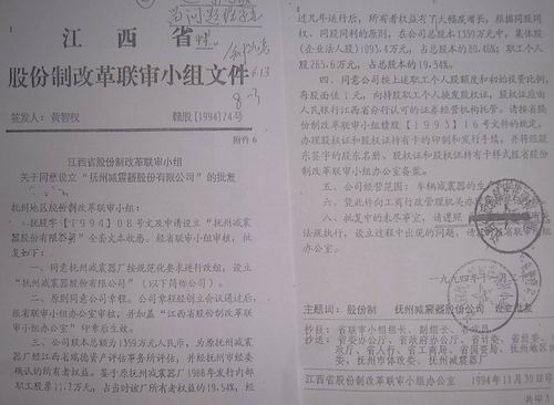 1994年6月17日,江西省股份制改革联审小组办公室下发了(赣股办[1994]04号) 《关于确认抚州减震器厂为股份制试点企业并筹建“抚州减震器股份有限公司”的通知》,此通知:1、确定了职工1988年购买了股票;2、明确规定不能退股;3、按股分红,风险共担。